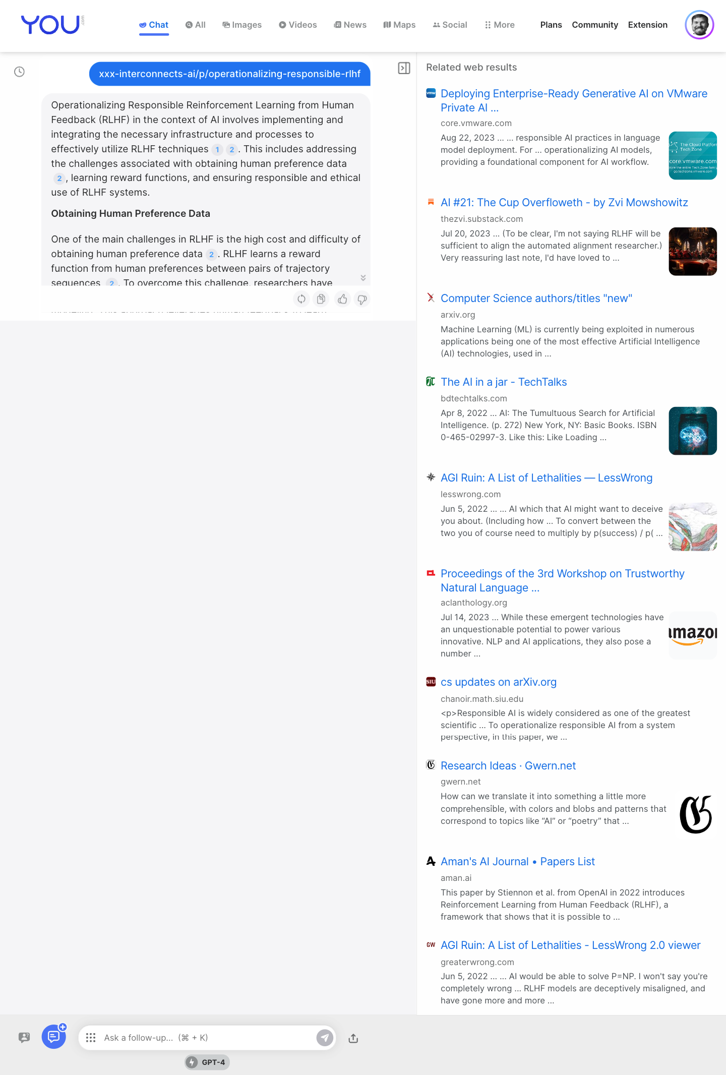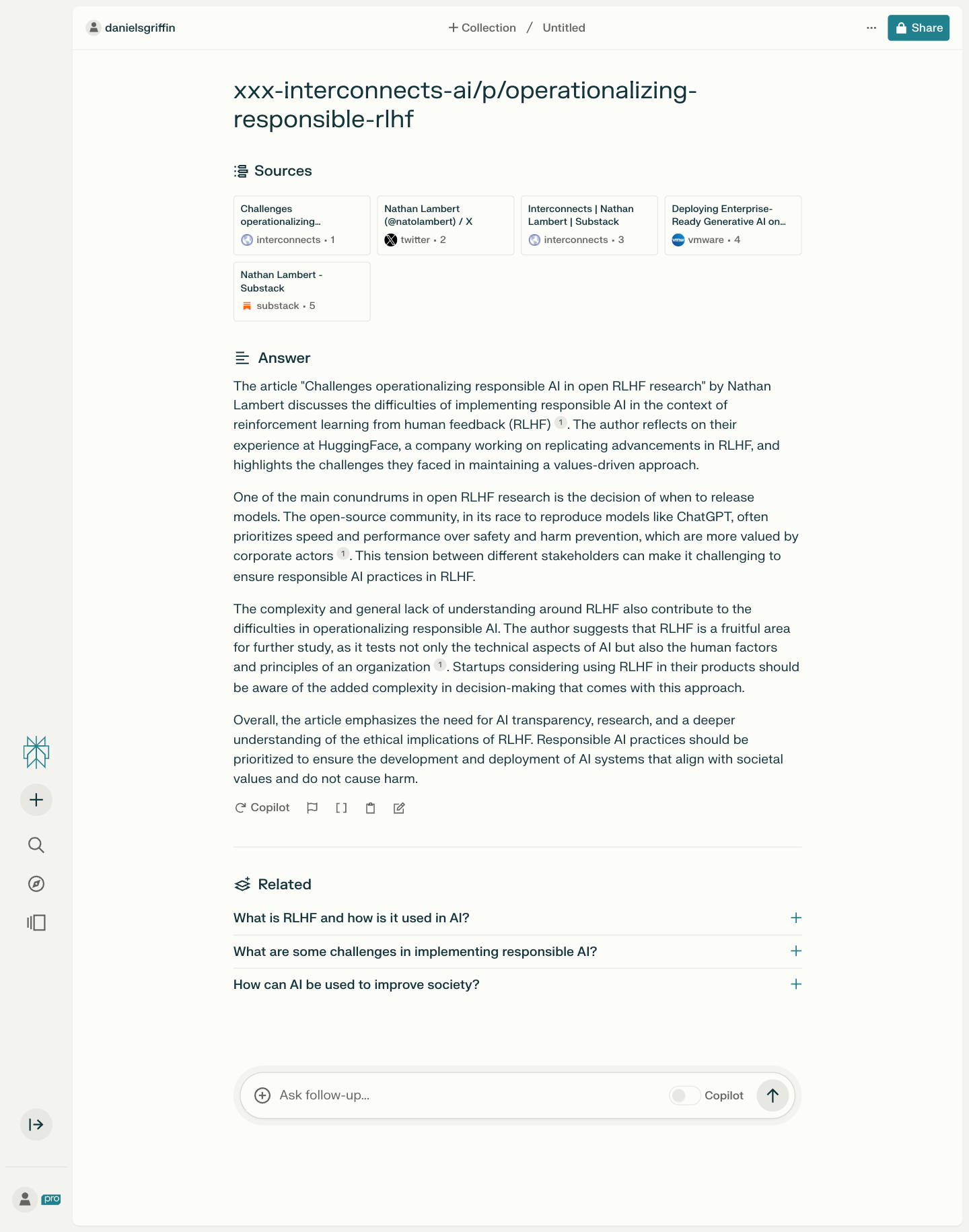 This really is a great post from \@natolambert on ethics, data, and RLHF in tech companies. I wish I could share it with you all, but tweets w links are now demoted. Does this work? Change the 'x' to 'w', and the - to '.' . xxx-interconnects-ai/p/operationalizing-responsible-rlhf